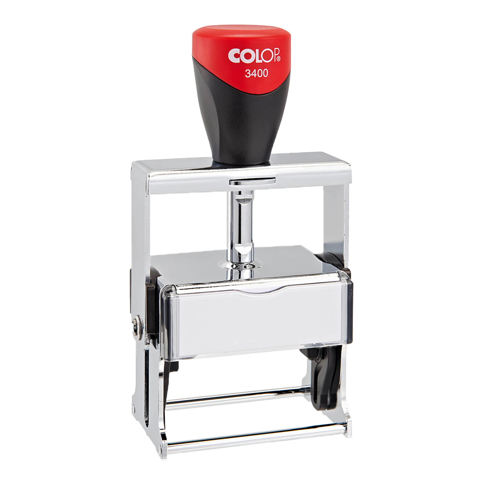 Colop eXpert 3400 zelfinktende stempel. Max. 6 regels tekst en/of logo. Zeer stevige metalen stempel.