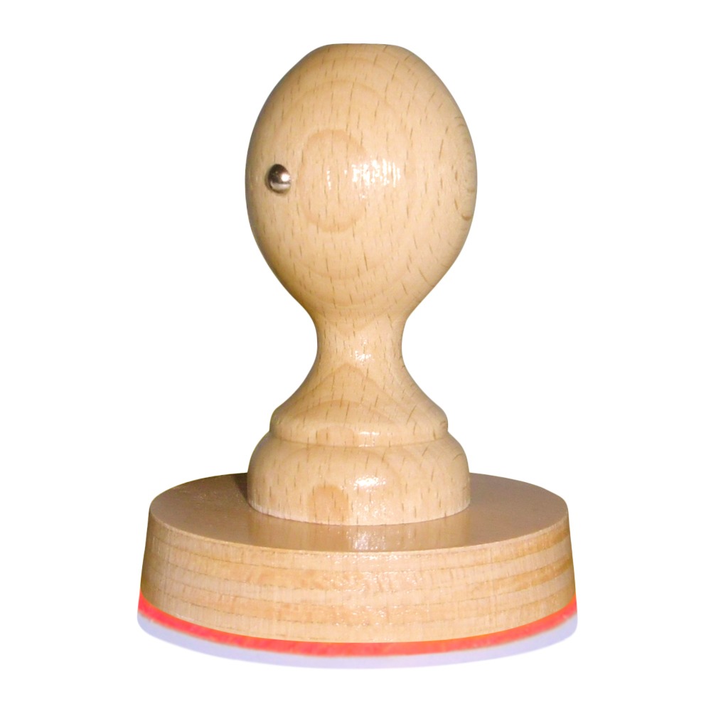 Grote ronde handstempel met mooi beukenhouten montuur